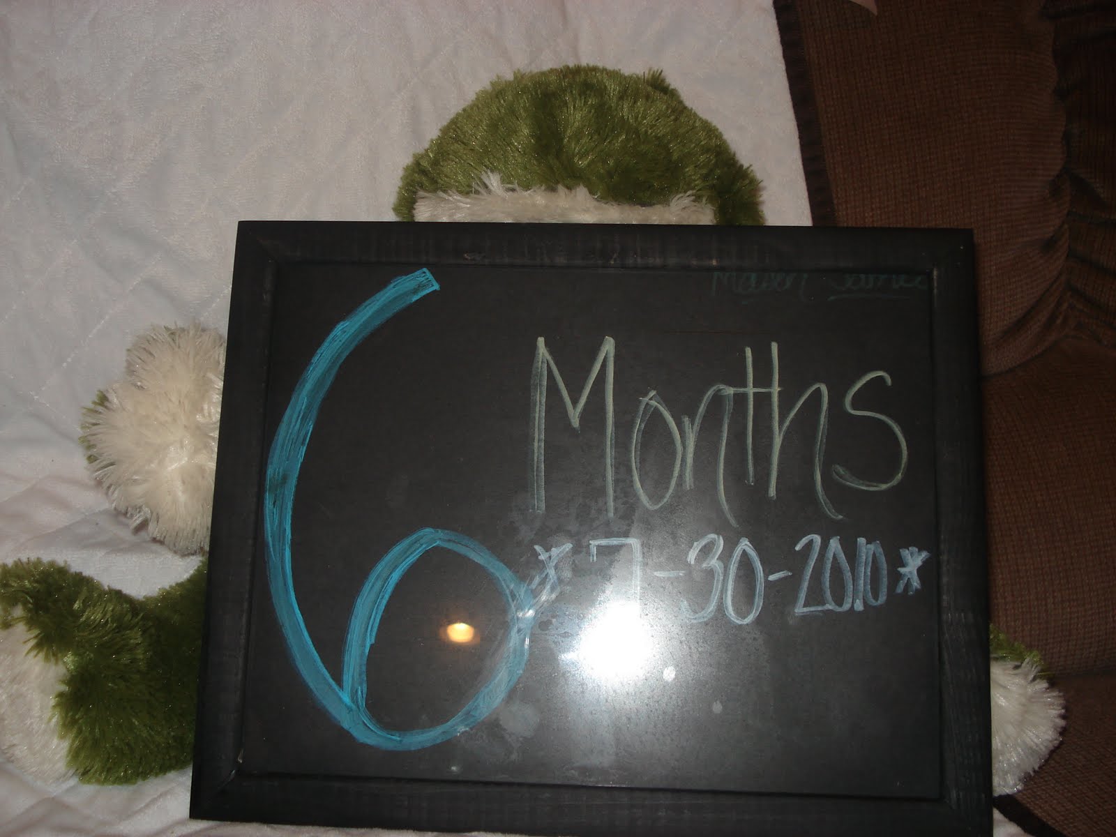 We didn’t sing Happy 6 Month Birthday yet. We will do it tomorrow because by the time everyone was home to do it today Mason was knocked out!