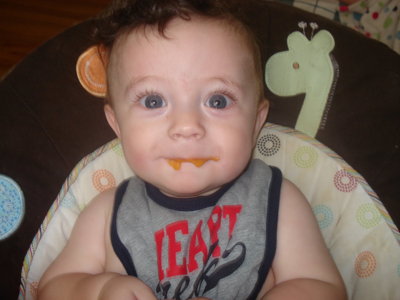 Mason was EBF until his 6 month birthday when he got his first taste of *Real Food* Sweet potatoes!