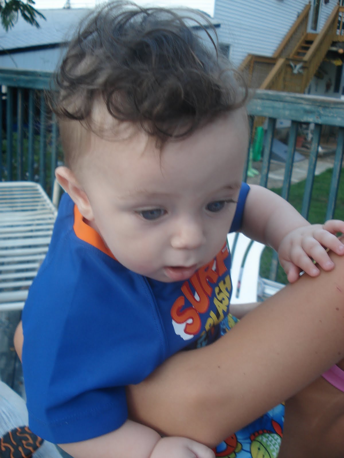 So after dinner was done being made I went into the pool with Mason. It was his very first time and he seemed to love it. He was getting sleepy at that point though so we went inside since it was also getting cold and took a bath. He loves bathtime with his Mommy 🙂 He nursed and played and then nursed and went to bed.