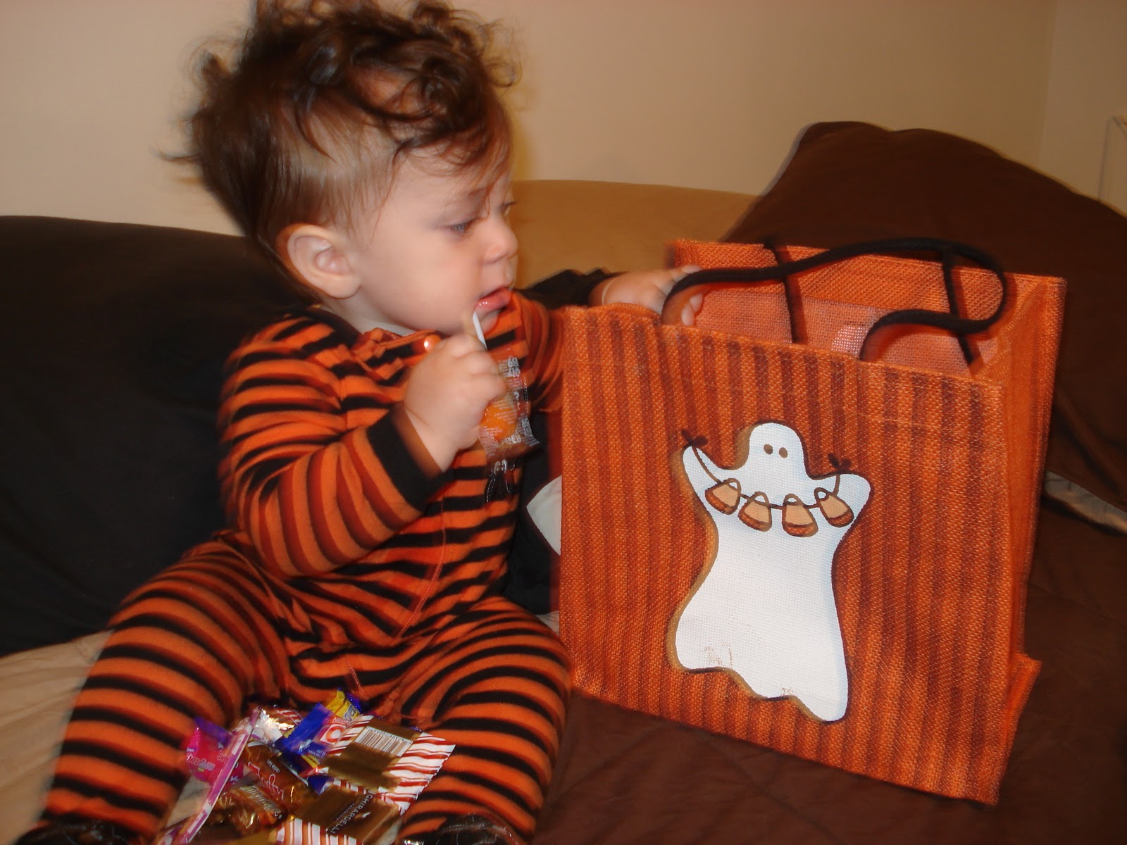 I took Mason trick or treating THREE times! It’s his first so I had to make it exciting. Too bad he had NO idea what was going on. But I got to show off my cute little baby and B and I got to have some yummy candy..Win/Win right?