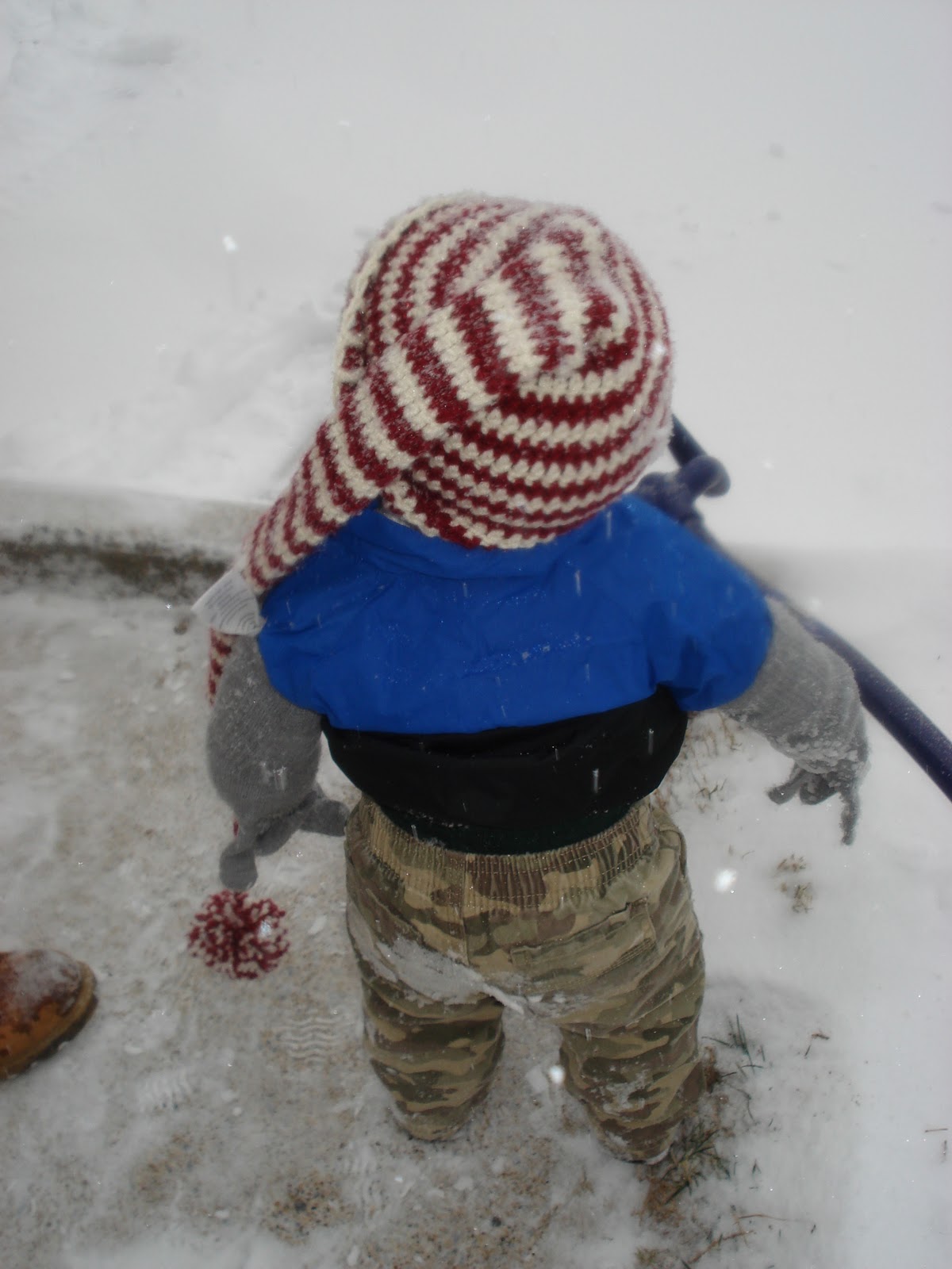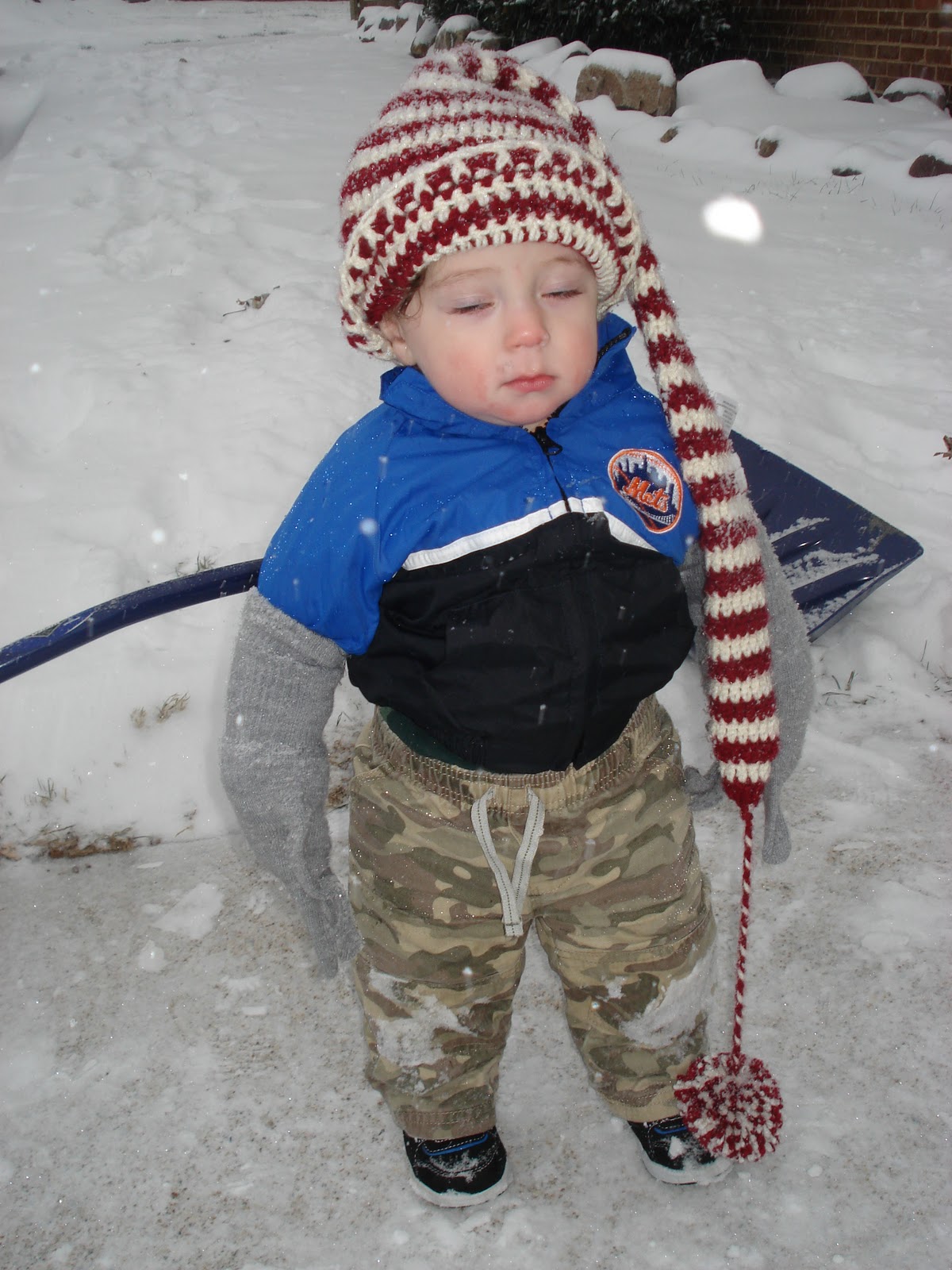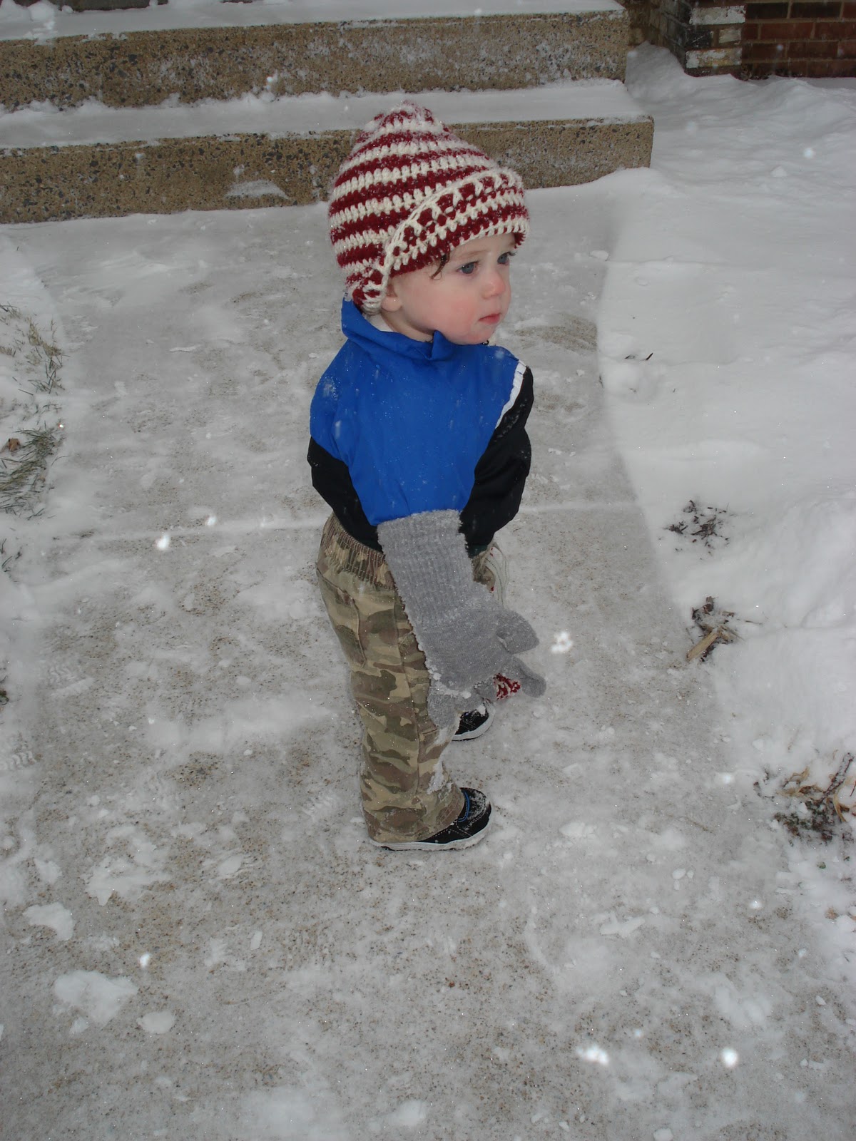 SNOW. Okay not actually. It should be more like Mason’s first time IN the snow since he’s technically seen snow before from the warmth of a hospital window and from the warmth of his own home. Mason is a snow baby. I labored with him during a snow storm and a couple of days after we took him home from the hospital we were hit with some more snow, around two feet if I remember correctly. Needless to say we did NOT take Mason out in the snow.