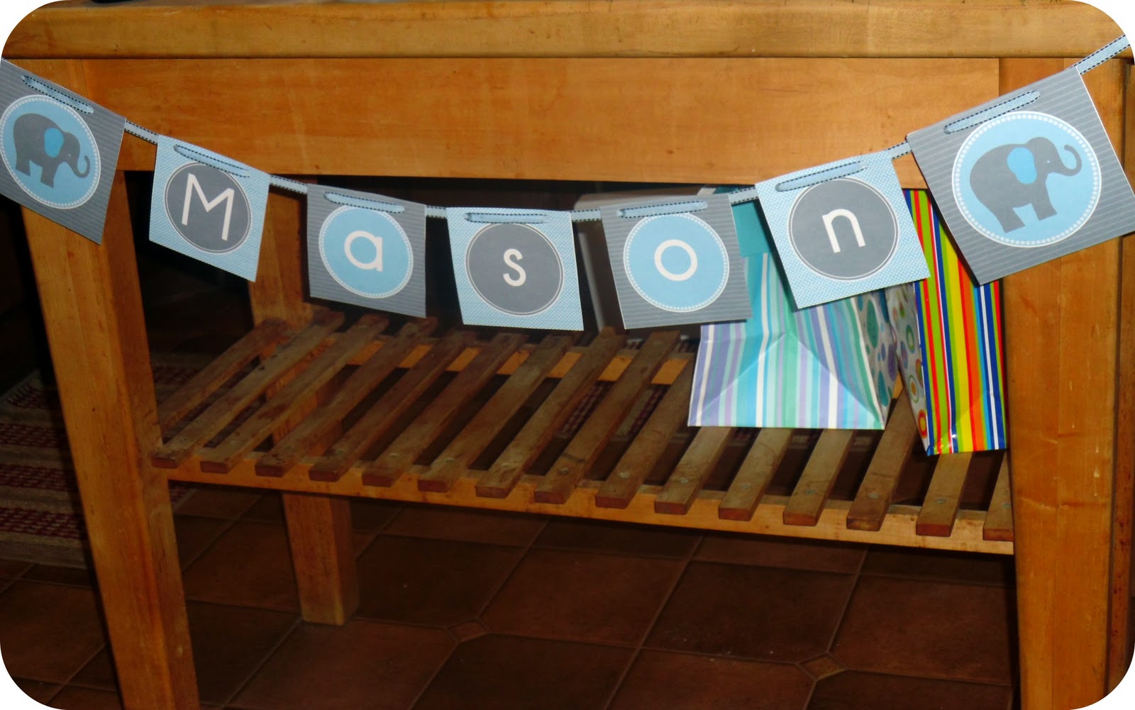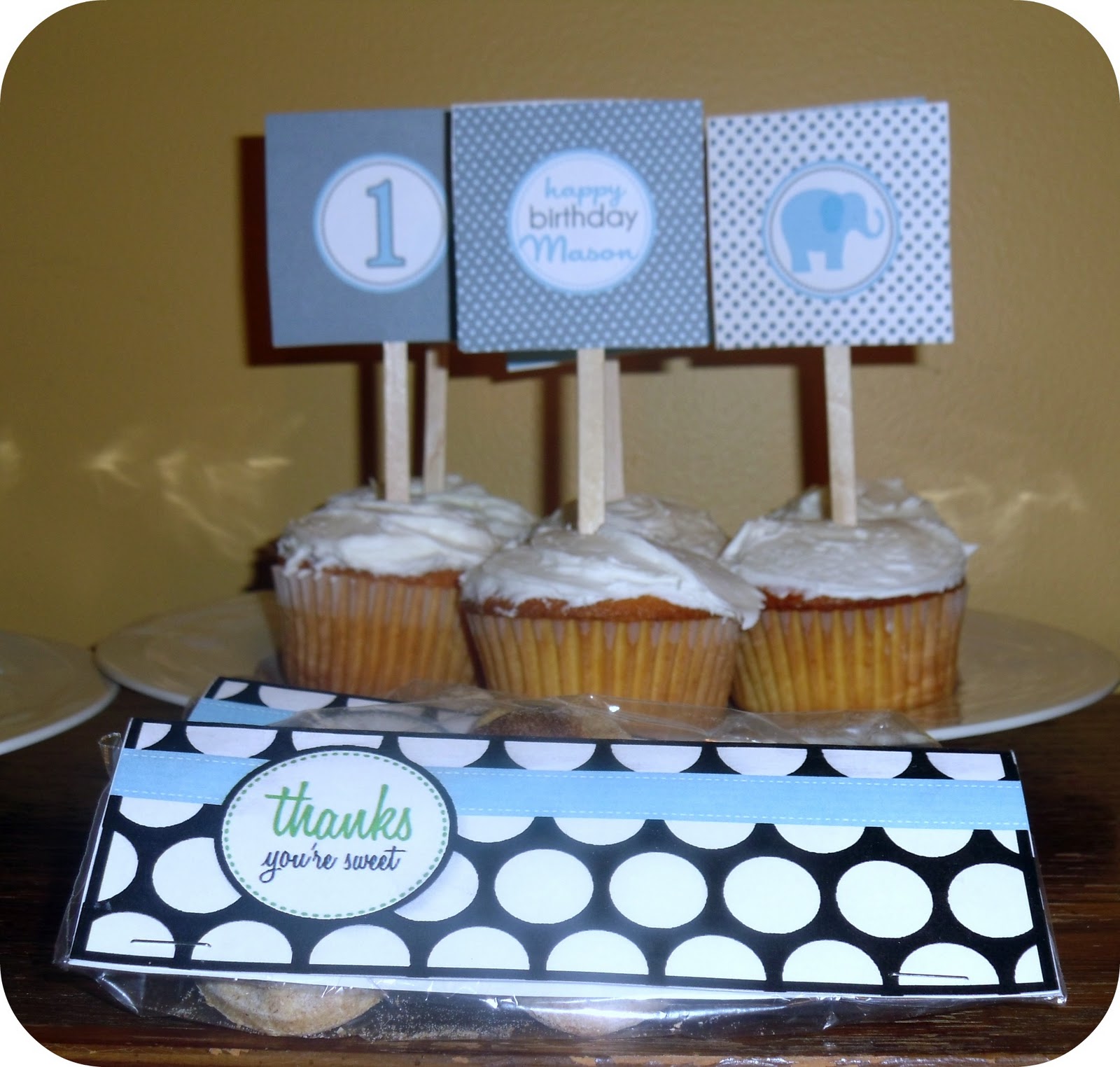 I was super excited to find Proffitt Productions who made the awesome custom decorations for Mason’s 1st Birthday Party! It was really important for me to have Elephants that weren’t circus themed and that’s exactly what I got!! LOVE What Amy at Proffitt Productions came up with! We also got super cute Elephant Cupcake Toppers made by AJZ Delights on Etsy! Everything came out so great! I have giveaways coming up from both Etsy Shops! So be sure to check out Little BGCG and His Mama Review It for a chance to win your own custom decorations!