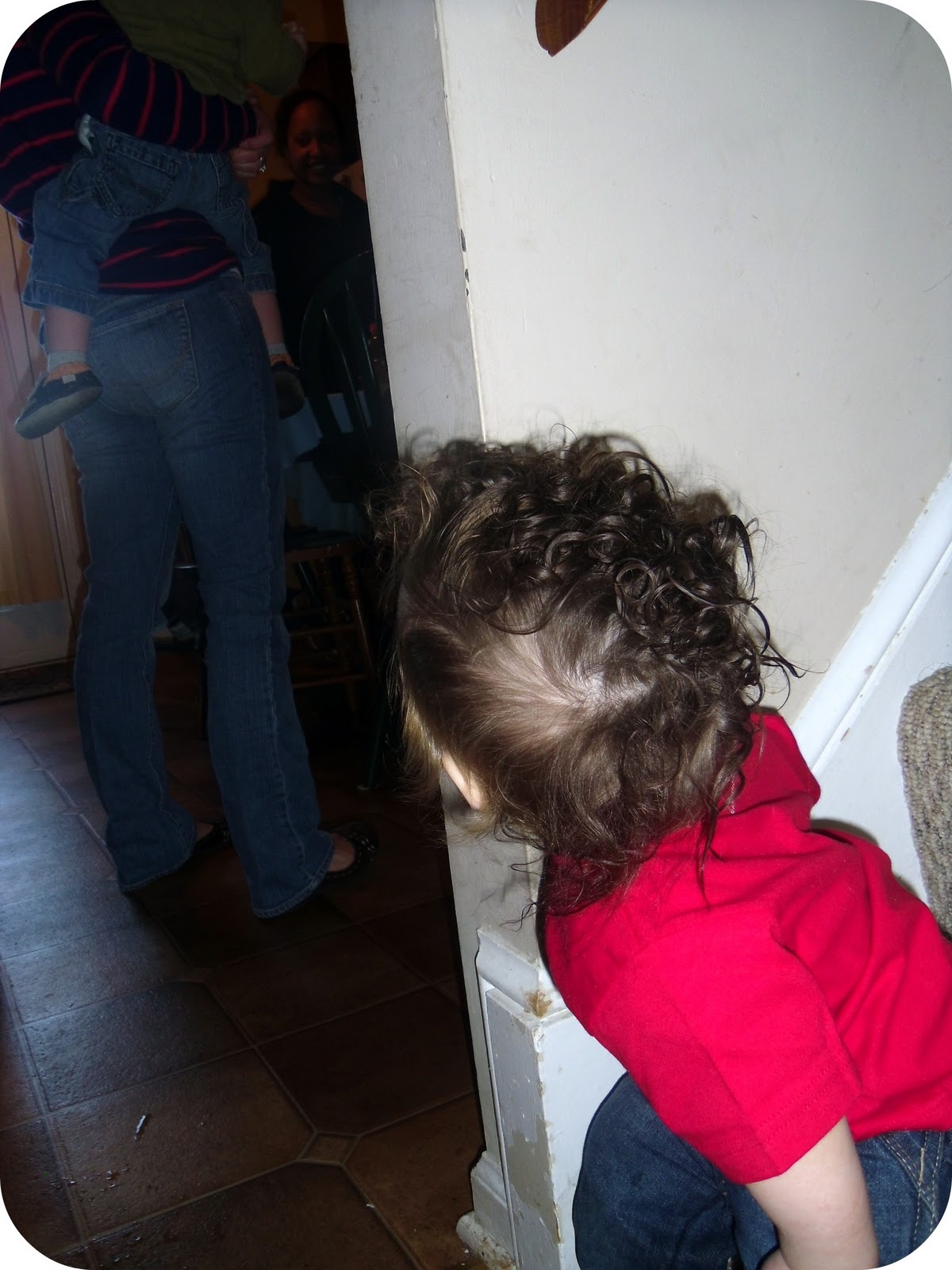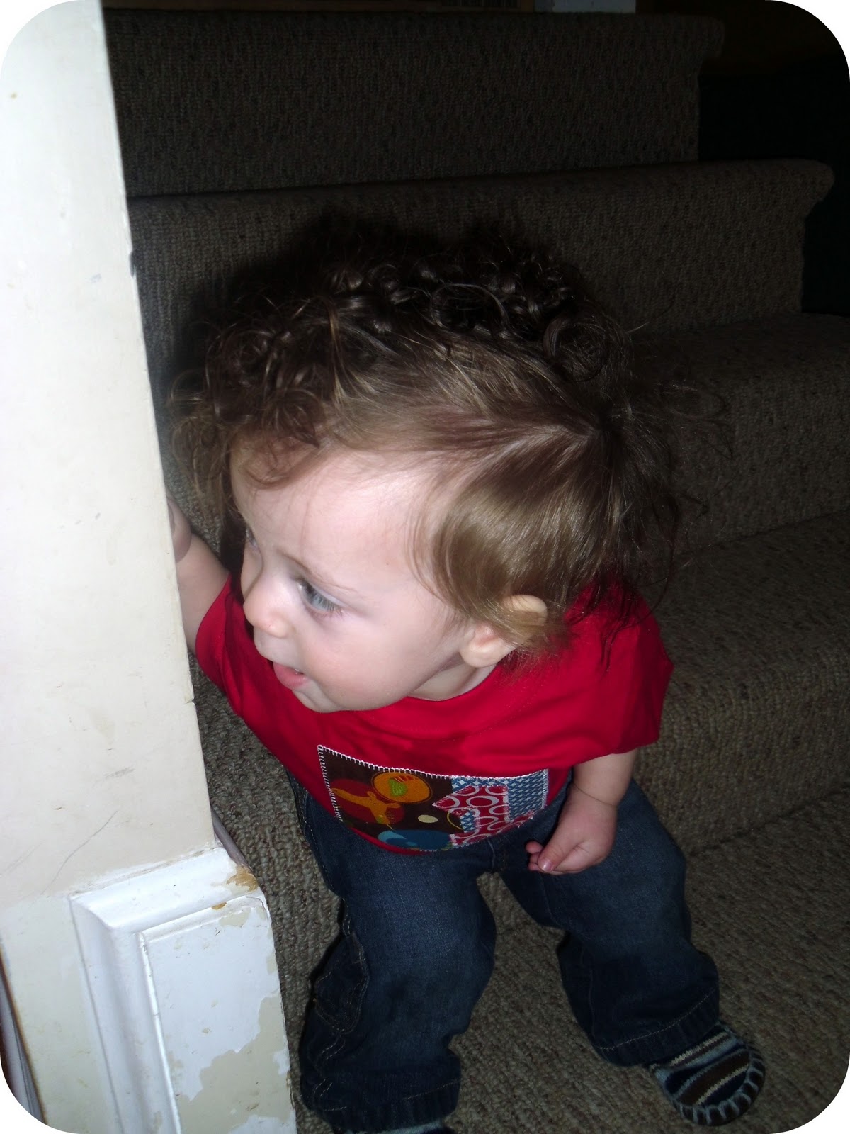 First he was mesmerized by the TV while everyone else was in the kitchen, so I tried to get him to come into the kitchen which resulted in him going on the stairs and a photo shoot.