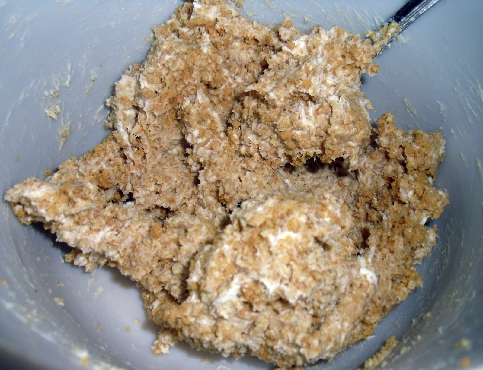While the pudding is setting, I made my first layer of the cream cheese/graham cracker mix: