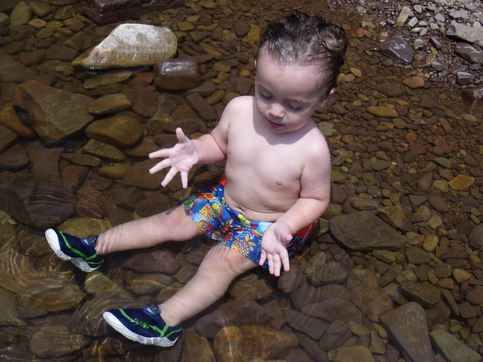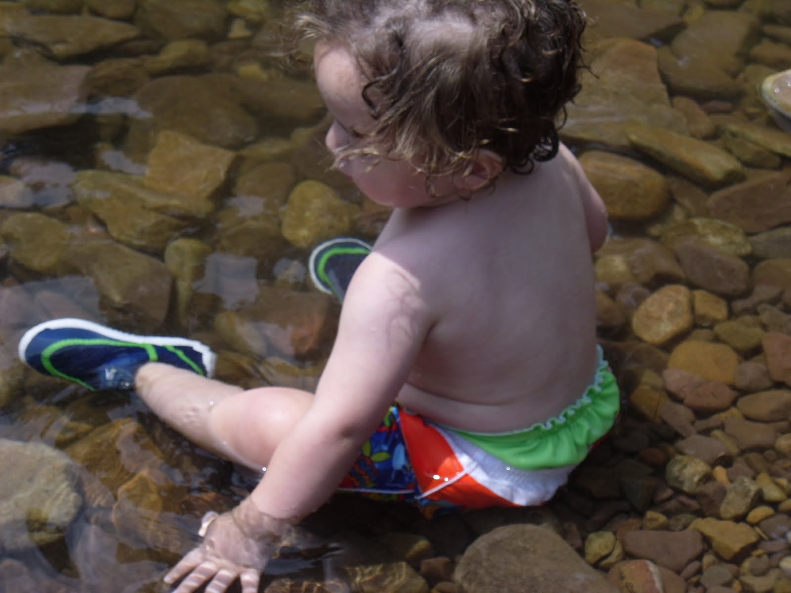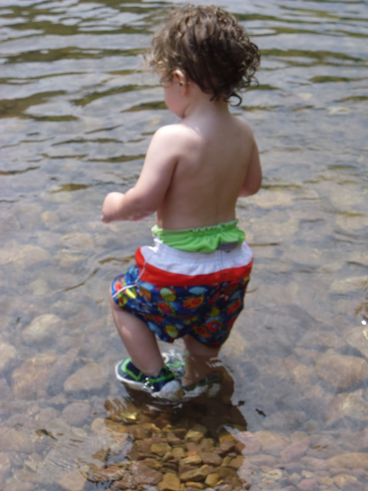 He was pretty cautious the whole time because when we first got there he went a little too deep, slipped on a rock and went under. B got to him before I did and he was perfectly fine but it freaked him out. But even being cautious he sometimes got a little daring, in the swallow end!