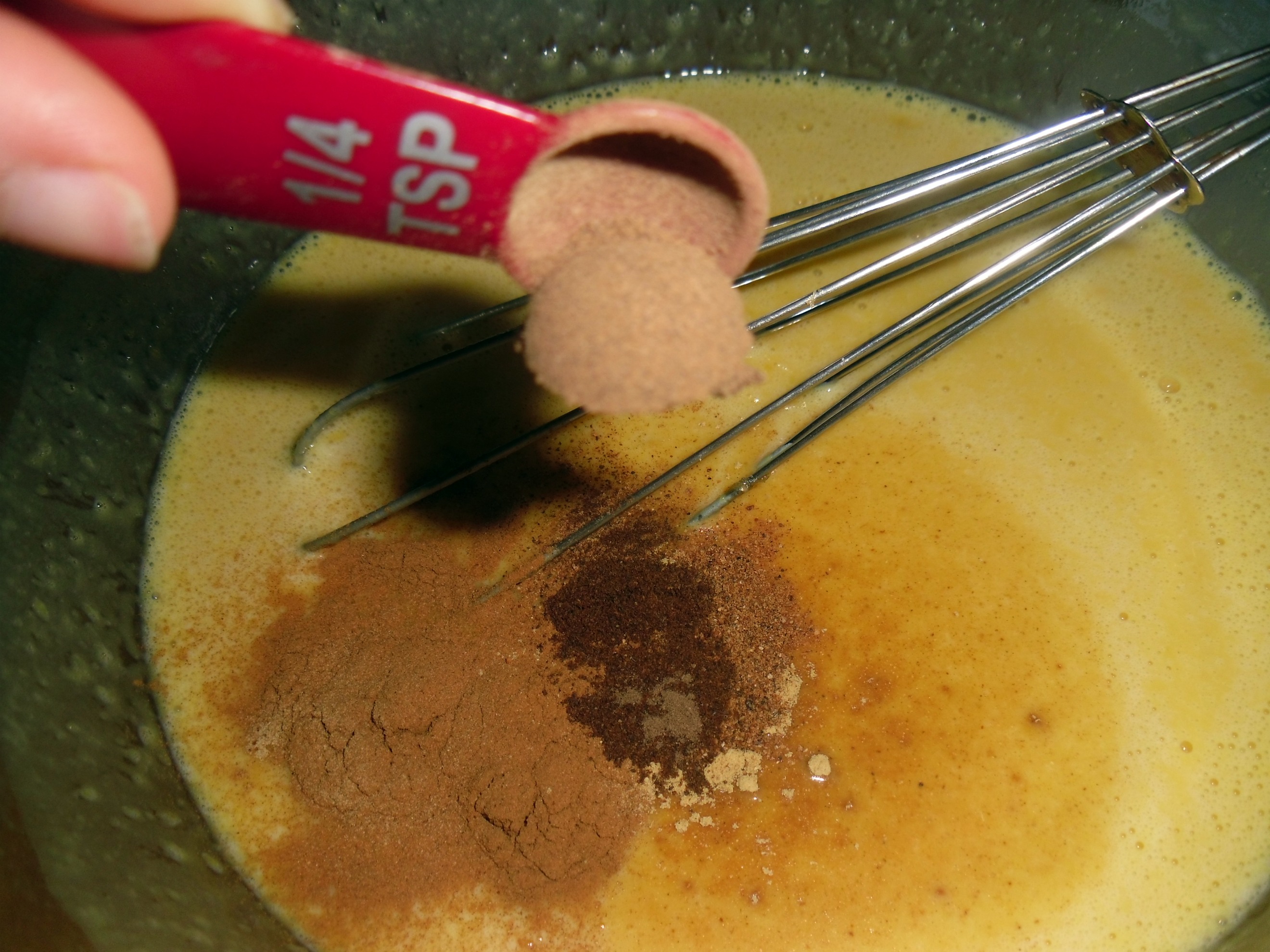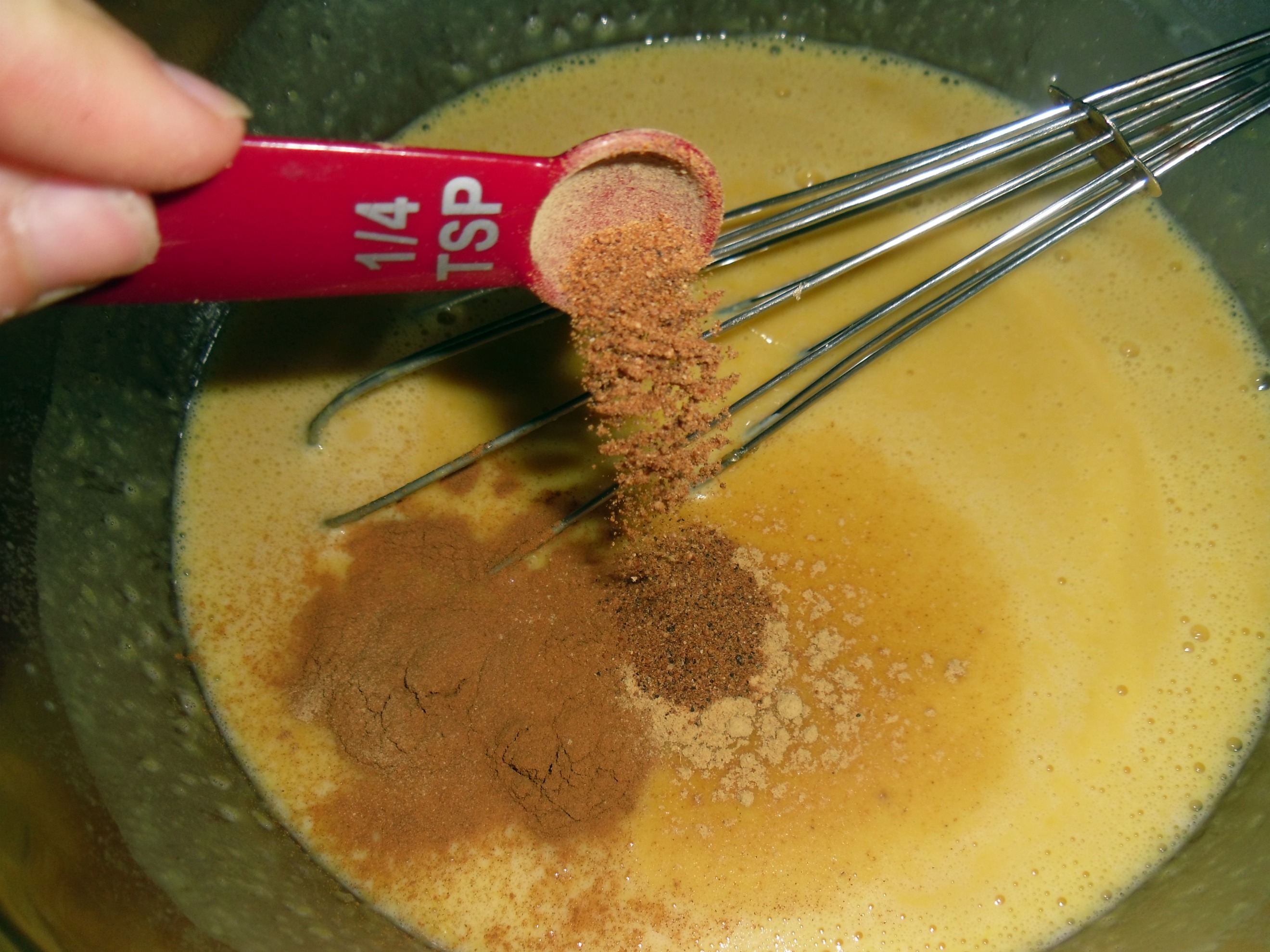- Once that is combined add 3/4 Cup Brown Sugar, 1 teaspoon Cinnamon, 1/4 Teaspoon Salt, 1/4 Teaspoon Ginger, 1/4 Teaspoon Nutmeg , 1/4 Teaspoon Cloves, and 1/4 Teaspoon All Spice.