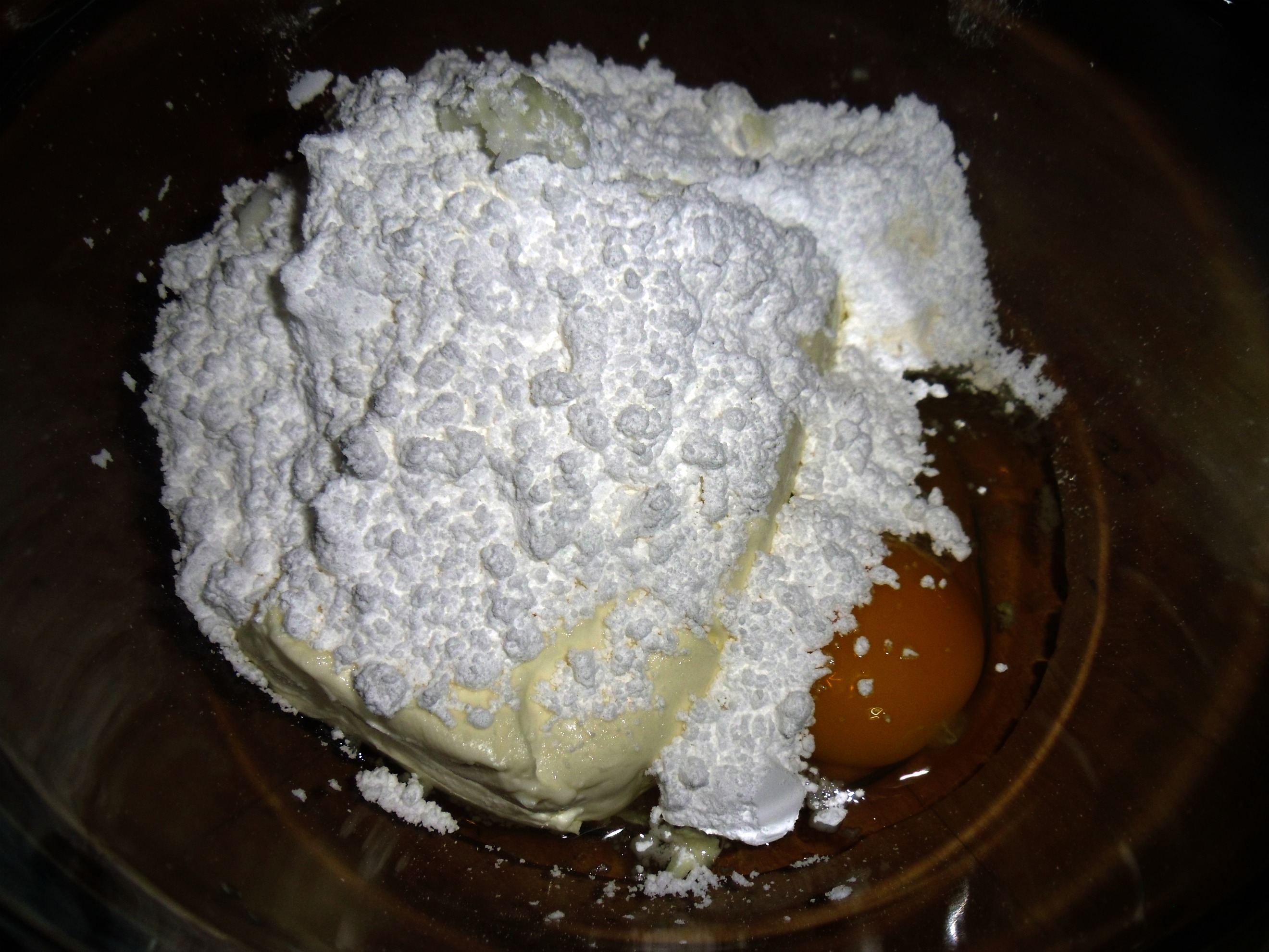 Add the 1 cup confectioner’s sugar, 1 tbls flour and 1 egg