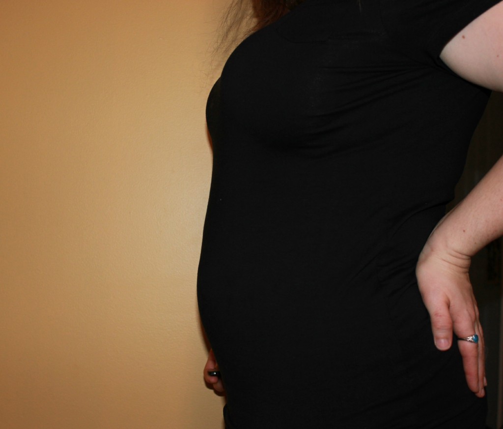 And now I’ll leave you with a “bump” picture. With clothes on, especially maternity clothes a bump is visible. With my clothes off I’d call it more of a blump. Or probably even fat lol. But even so, here’s a picture taken today!