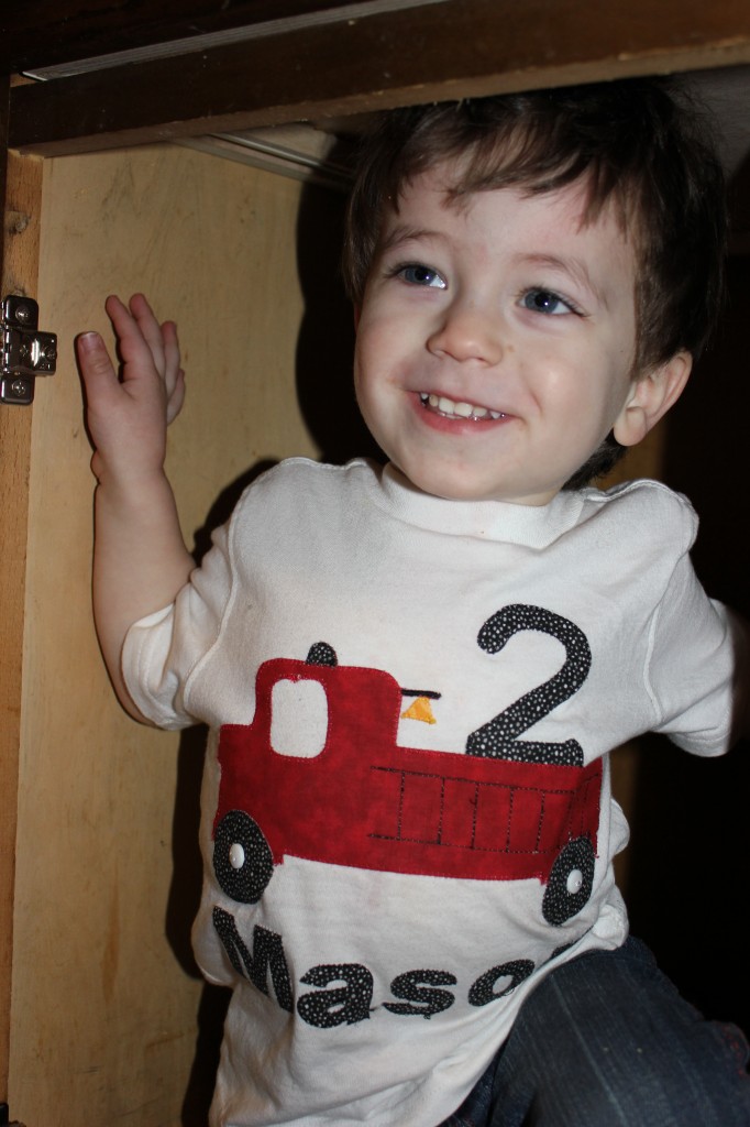 On the day of Mason’s birthday we laid low. We were suppose to go to the Fire Station so Mason could get a tour of a real life fire truck but it was a little cold and we were all still pretty tired from the day before. Instead we hung out at home. B and I ended up cleaning out some of our kitchen cabinets and Mason had the best time hiding in one of them!