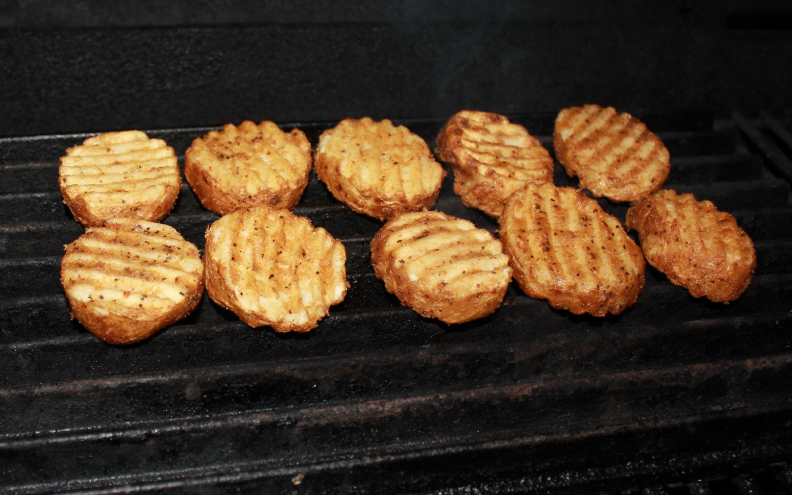 These are the seasoned thick cut potatoes just put on the grill! And these are them almost done!