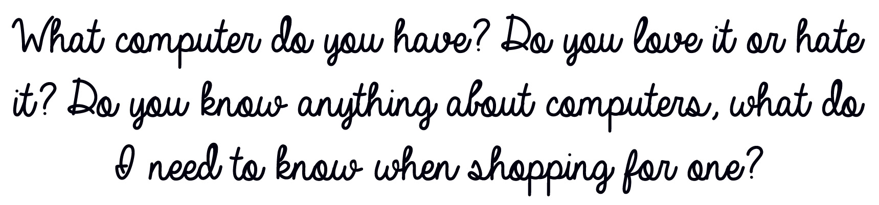 My latest issue with my computer is, thanks to my negligence, 3 out of my 4 USB ports are broken. I had to get something to turn my 1 USB into two so I could upload pictures and save pictures to my external hard drive. It’s working for now but I know that soon enough I’m going to need a new computer. Unfortunately I have no idea where to start.