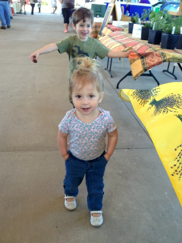 Saturday we went to the market while B went fishing. It was a nice little trip until Kyla had a fall. But before then she was cracking everyone up while she walked around with her hands in her pockets.