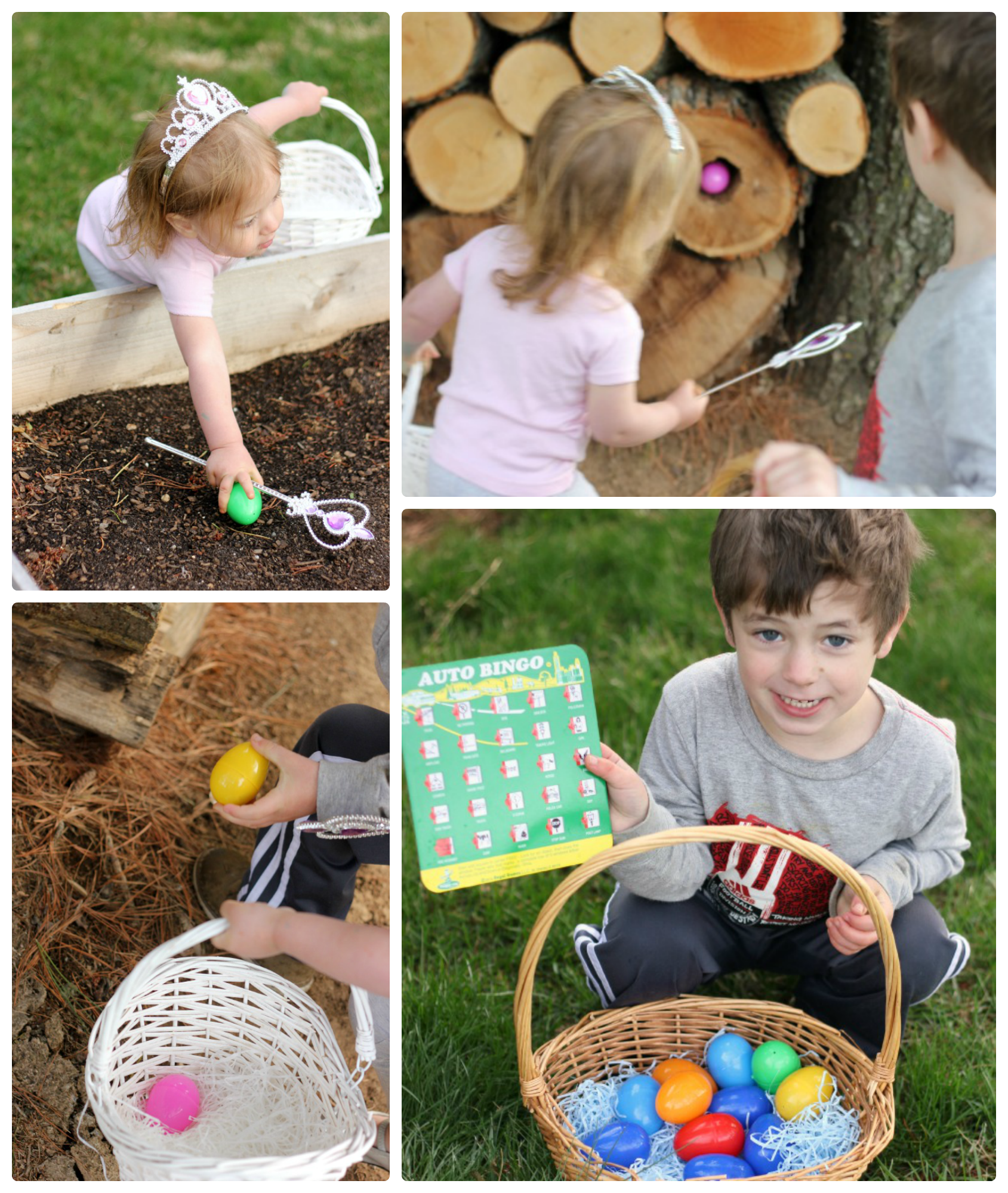 Mason woke up so excited to hunt for Easter Eggs. Kyla still didn’t really know what was going on but once she did she was all about it. She loved her basket especially her crown and wand. She barely wanted to put down her wand to get the eggs!