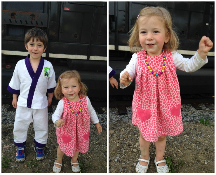 We love trying to make the ordinary fun which is why when we saw the train parked near our house we decided to go over and take a closer look. I even got a picture of the kids posing next to it!